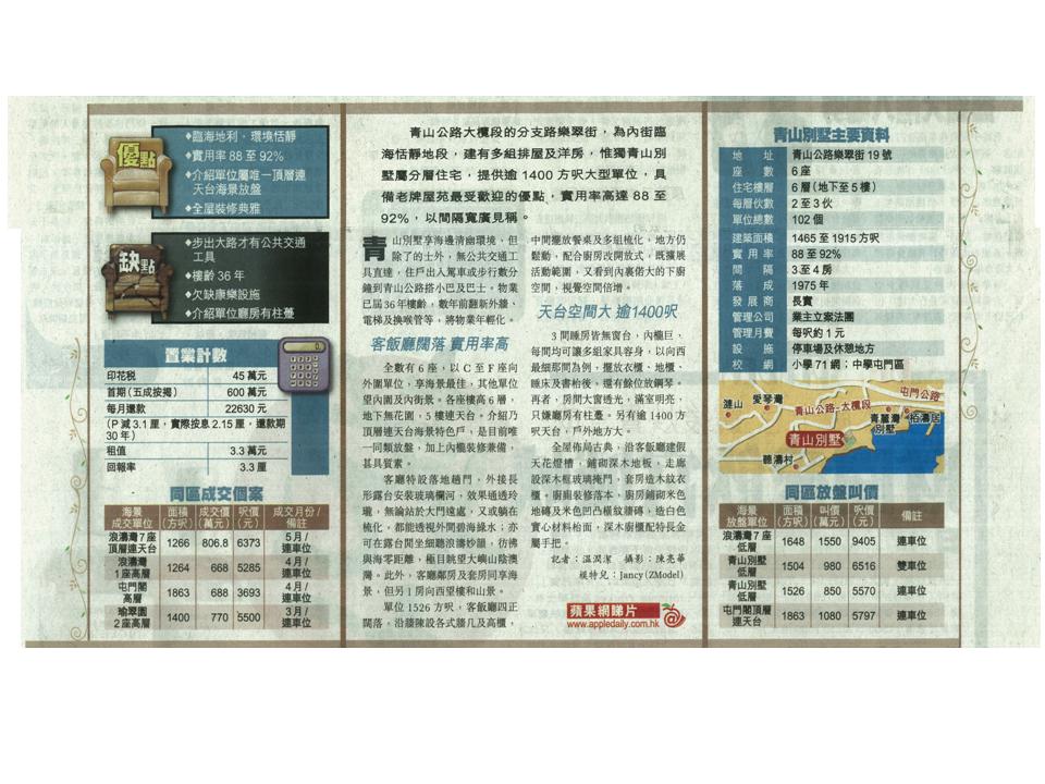 蘋果日報推介 - 青山別墅 (6月3日)